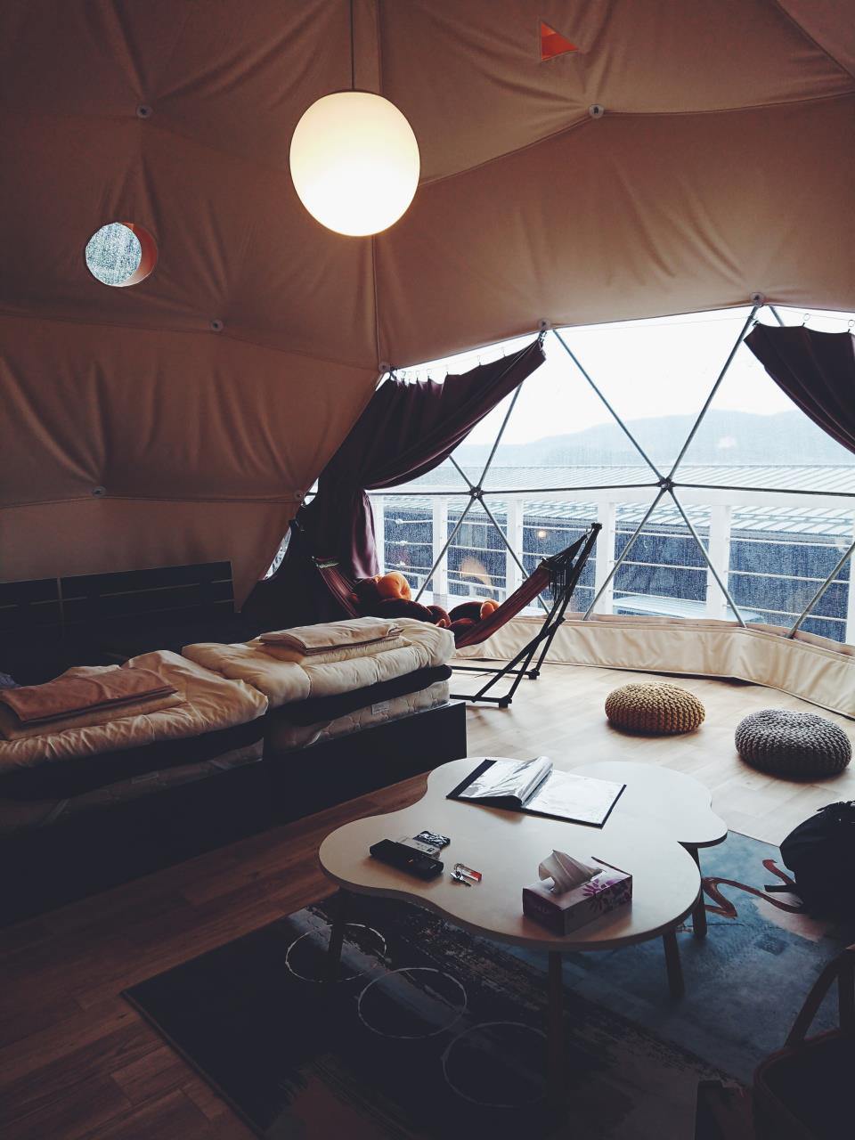 The sturdy dome tents are fully air conditioned, and come complete with beds, a sofa, a hammock, and other picturesque interior items. Meanwhile, one side of the tent is completely transparent, meaning you can look out over the sea or up at the stars. There is a space to have a BBQ next to the tent, clean toilets, and a bath, ensuring a comfortable camping experience for all who visit.