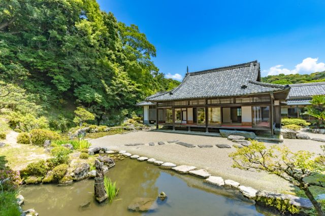 First founded in 770, Kokawa-dera Temple boasts over 1250 years of history. This esteemed temple was kept under the Kishu-Tokugawa Family and stands as home to a framed signboard from the tenth domain lord Tokugawa Harutomi, as well as the Hidari Jingoro carving of a subspecies of tiger said in legend to sneak out night after night to raid the fields gifted by Tokugawa Yoshimune, who served as the fifth feudal lord and eighth shogun. This nationally designated scenic garden featured a bold rock garden of layered Kishu stones that is dotted with cycad plants along its area. This dry rock garden boasts a dynamic design that is rarely seen in Japan.