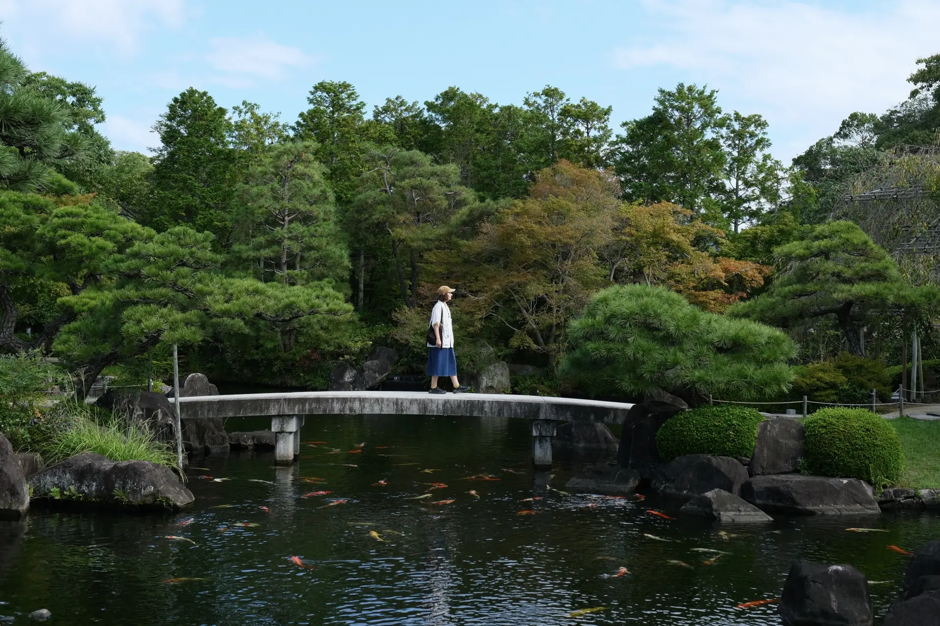 Spread across nine distinct walled gardens connected by winding stone paths and wooden bridges, Koko-en captures the diversity of Japanese landscape design: a tranquil pond garden reflecting the castle towers above, a bamboo grove, and a flower garden that changes with the seasons.