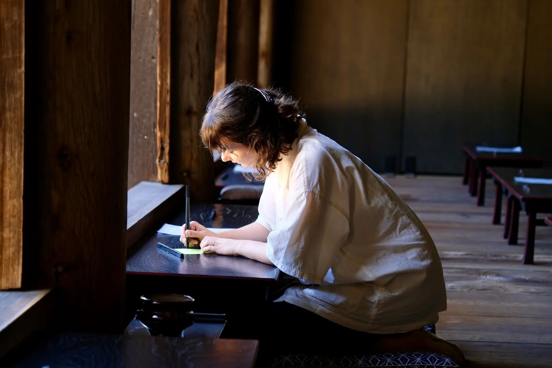 You can also try shakyo, the meditative practice of hand-copying Buddhist sutras — a quiet, mindful experience that mirrors the calm of the surrounding forest.