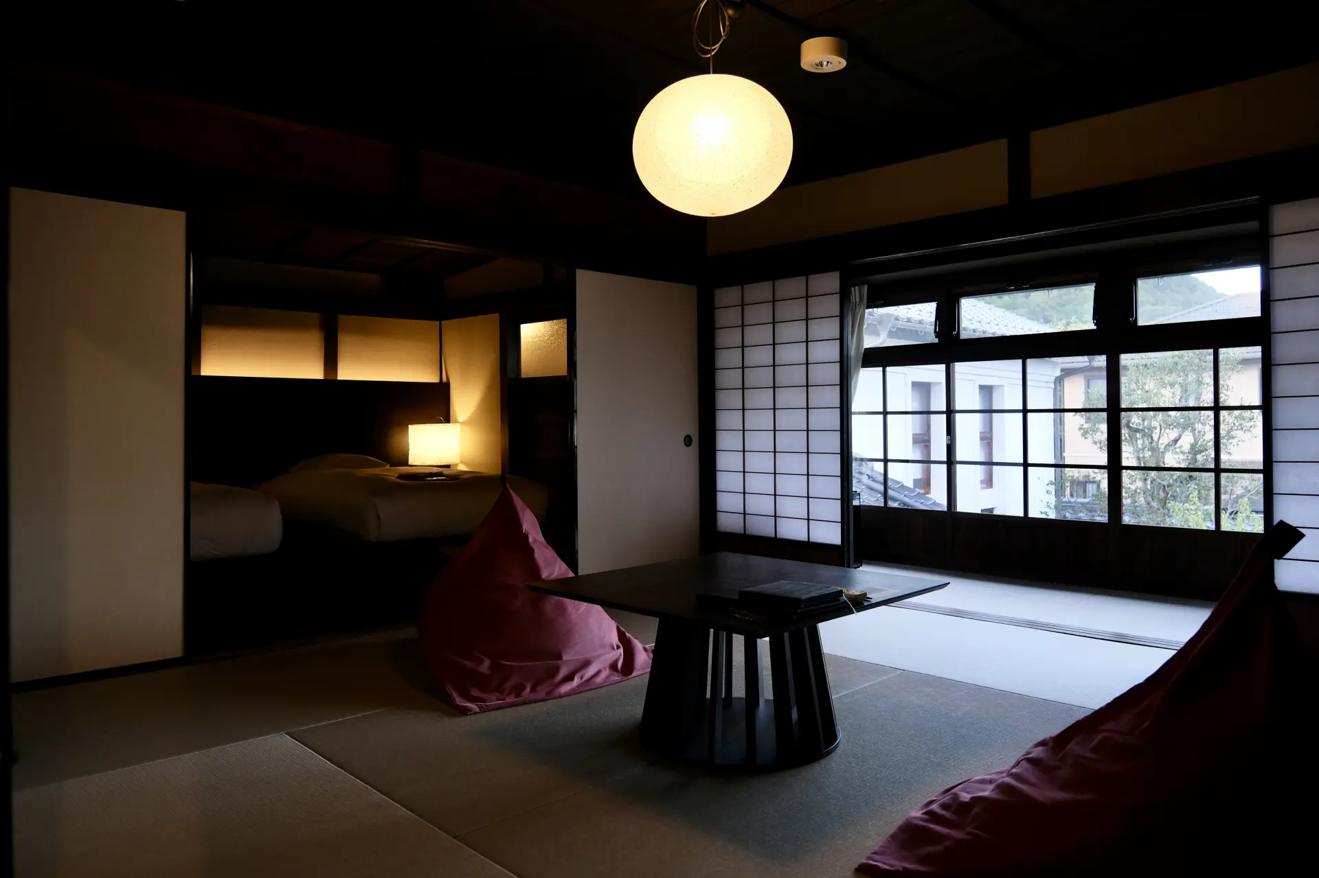 Dinner here is a highlight: a seasonal kaiseki course featuring Tajima beef, mountain vegetables, and creative dishes infused with sake or amazake, such as sweet potato with cacao and amazake.