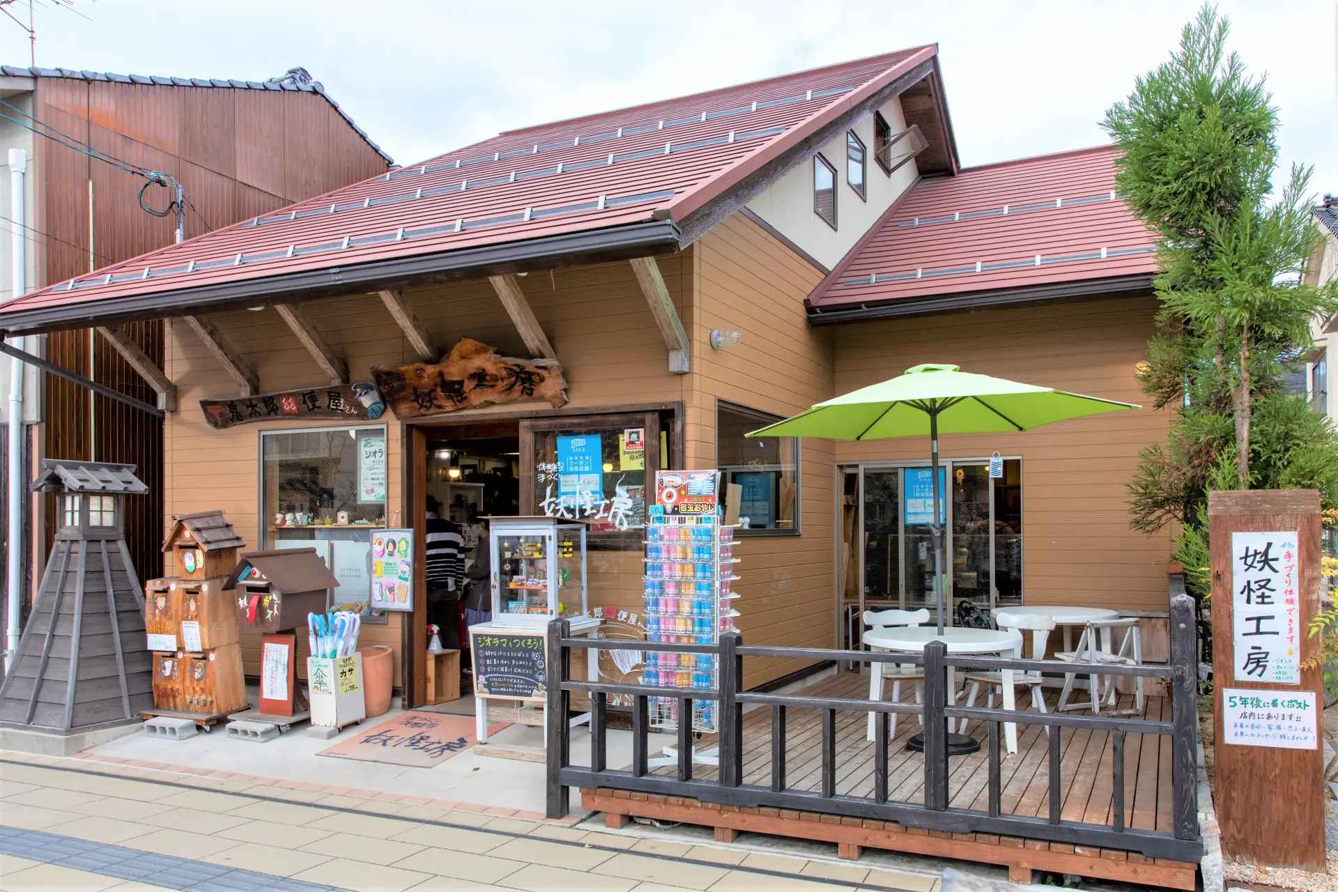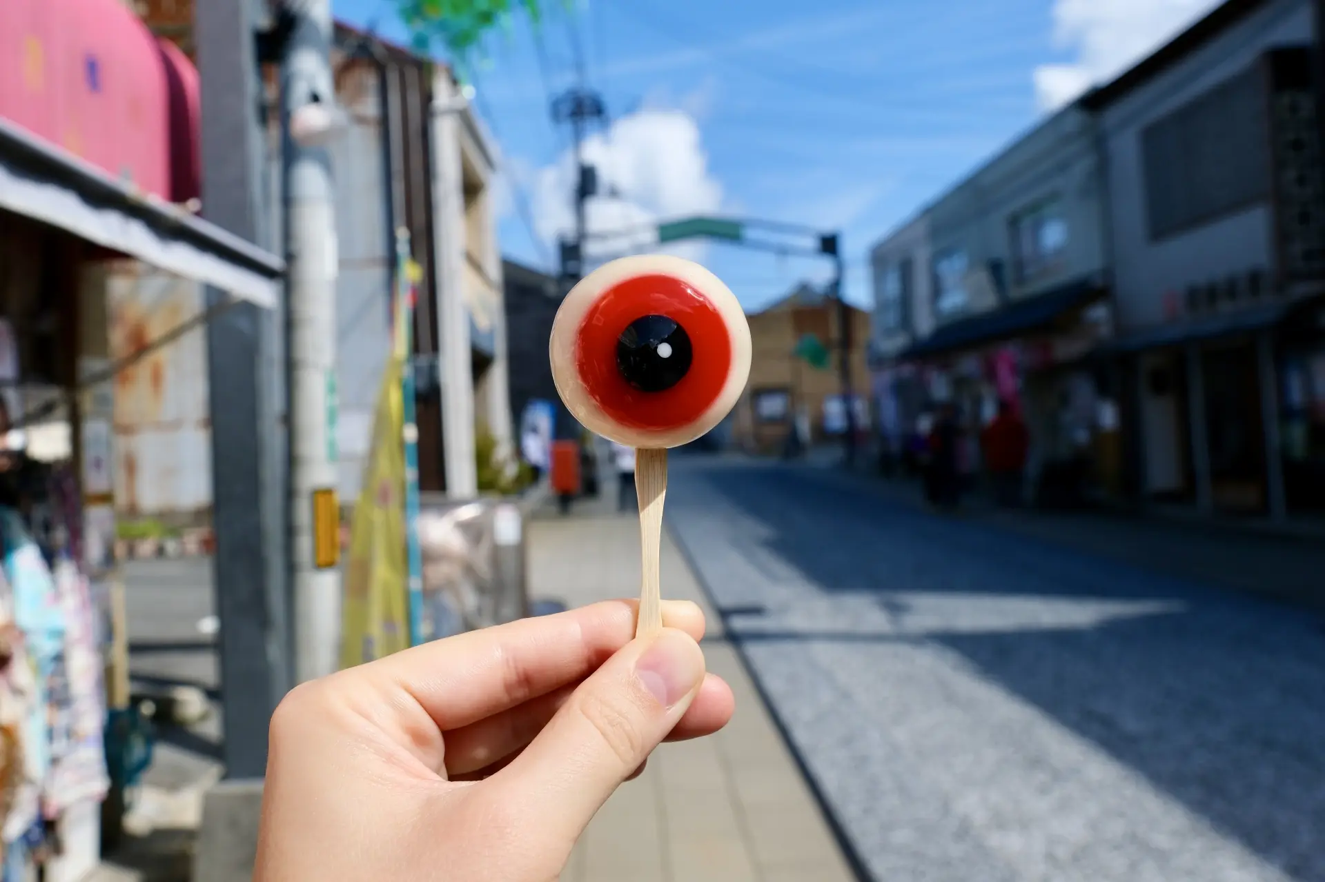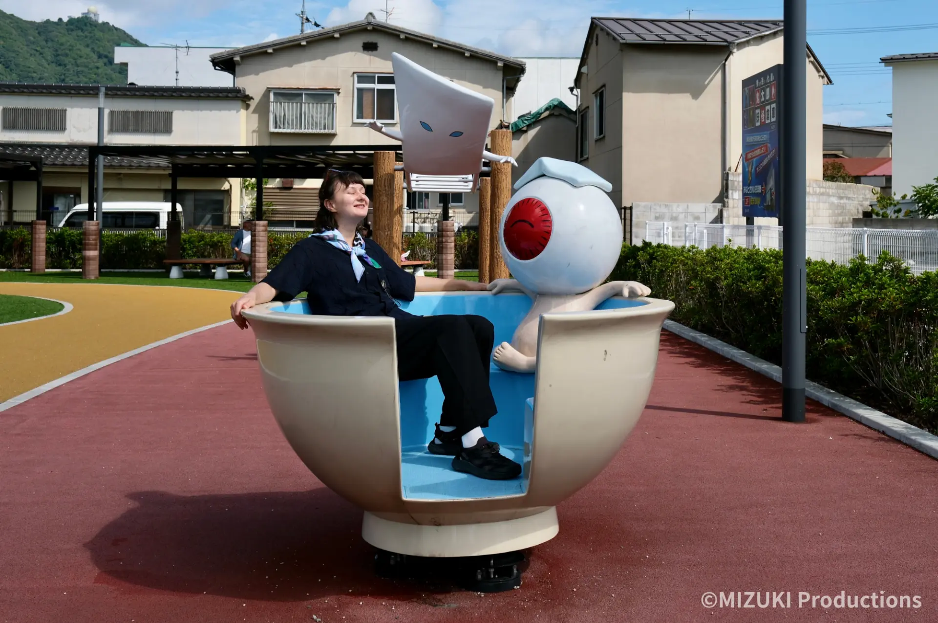 Local shops sell everything from GeGeGe no Kitaro-shaped sweets and coffee blends, and the air is filled with playful music from GeGeGe no Kitaro.