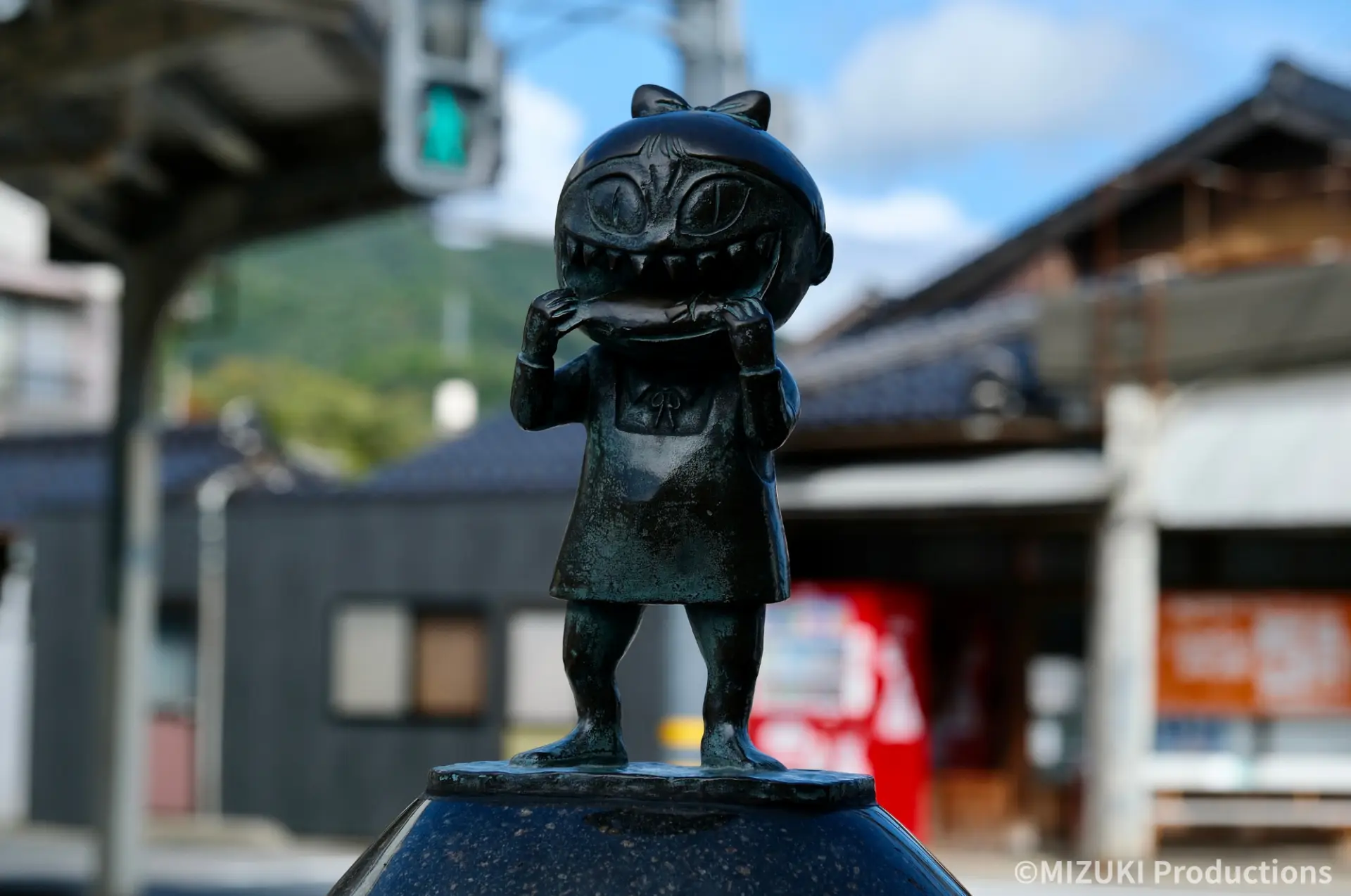 Crossing from Yonago into Sakaiminato, the atmosphere transforms once again. This quiet port town in Tottori Prefecture is the hometown of Mizuki Shigeru, the legendary manga artist who brought Japan’s ancient folklore to life through his beloved series GeGeGe no Kitaro.