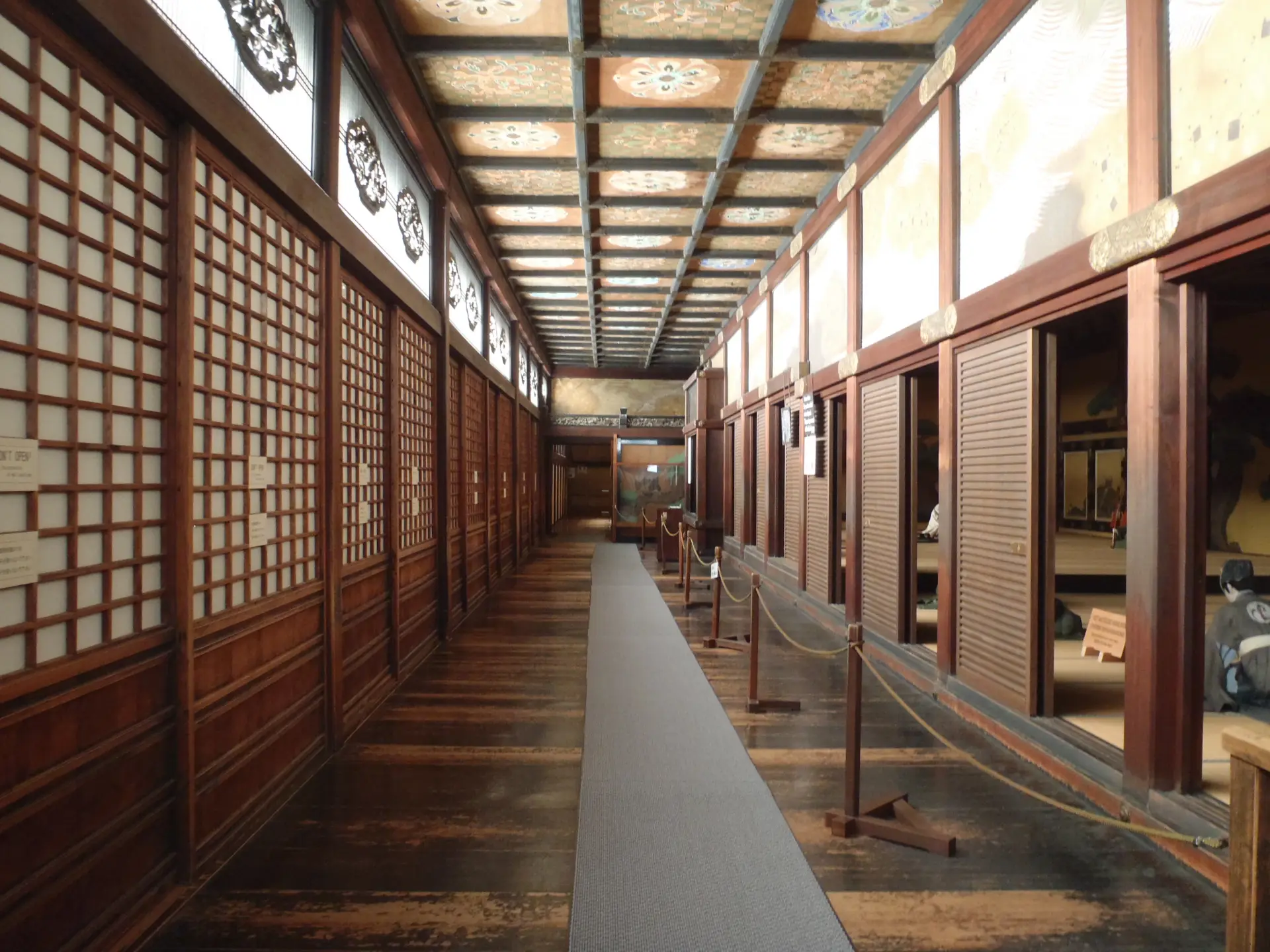 Inside the Ninomaru Palace, gilded sliding screens and lacquered wooden beams create an atmosphere of elegance and dignity. As you step inside, the famed “nightingale floors” emit their soft, melodic chirps beneath your feet.
