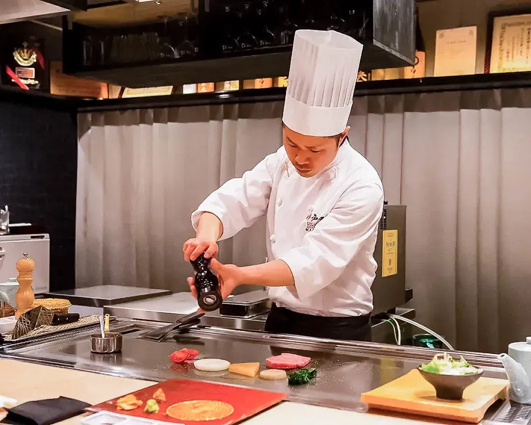 We will also visit Kitano Square, where a famous spot grants you a beautiful panoramic view of the city of Kobe. We will then visit one of Kobe’s most popular Kobe Beef restaurants where you can enjoy delicious Kobe beef steak and a live performance by the chef!