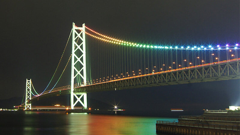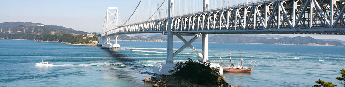 There is a route connecting Kobe/Akashi on the main island of Honshu and Tokushima on Shikoku Island, with legendary Awaji-shima at the center. It runs through areas with not only extraordinary panoramic views of the sea, but also a wide range of both traditional and modern features. Awaji-shima is the largest island in the Seto Inland Sea, and is connected to Hyogo Prefecture on the mainland by the world's longest suspension bridge (3,911 m), The Akashi Kaikyo Bridge, and then with Naruto City of Tokushima Prefecture by The Onaruto Bridge over the Naruto Strait.