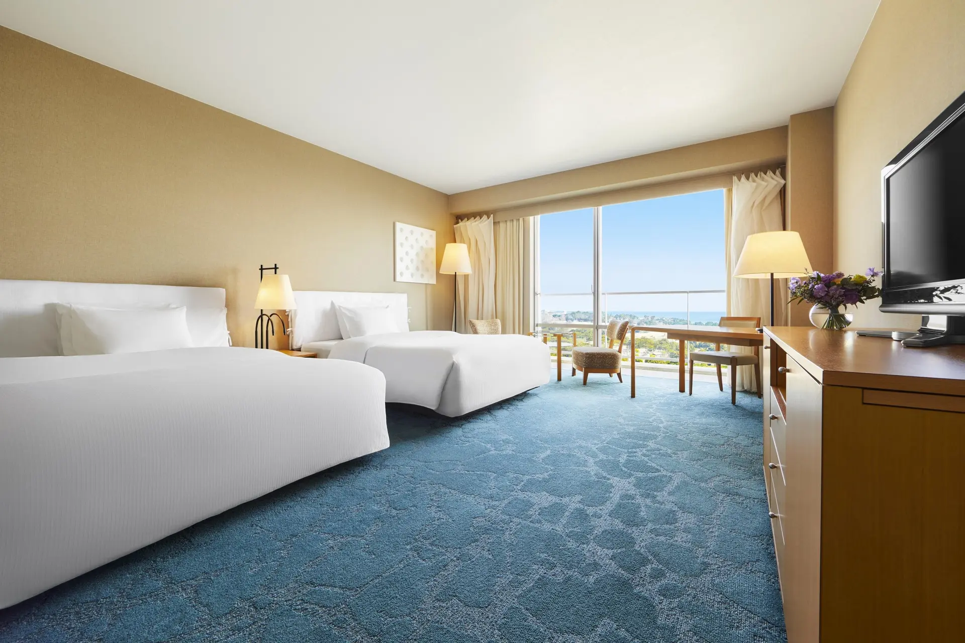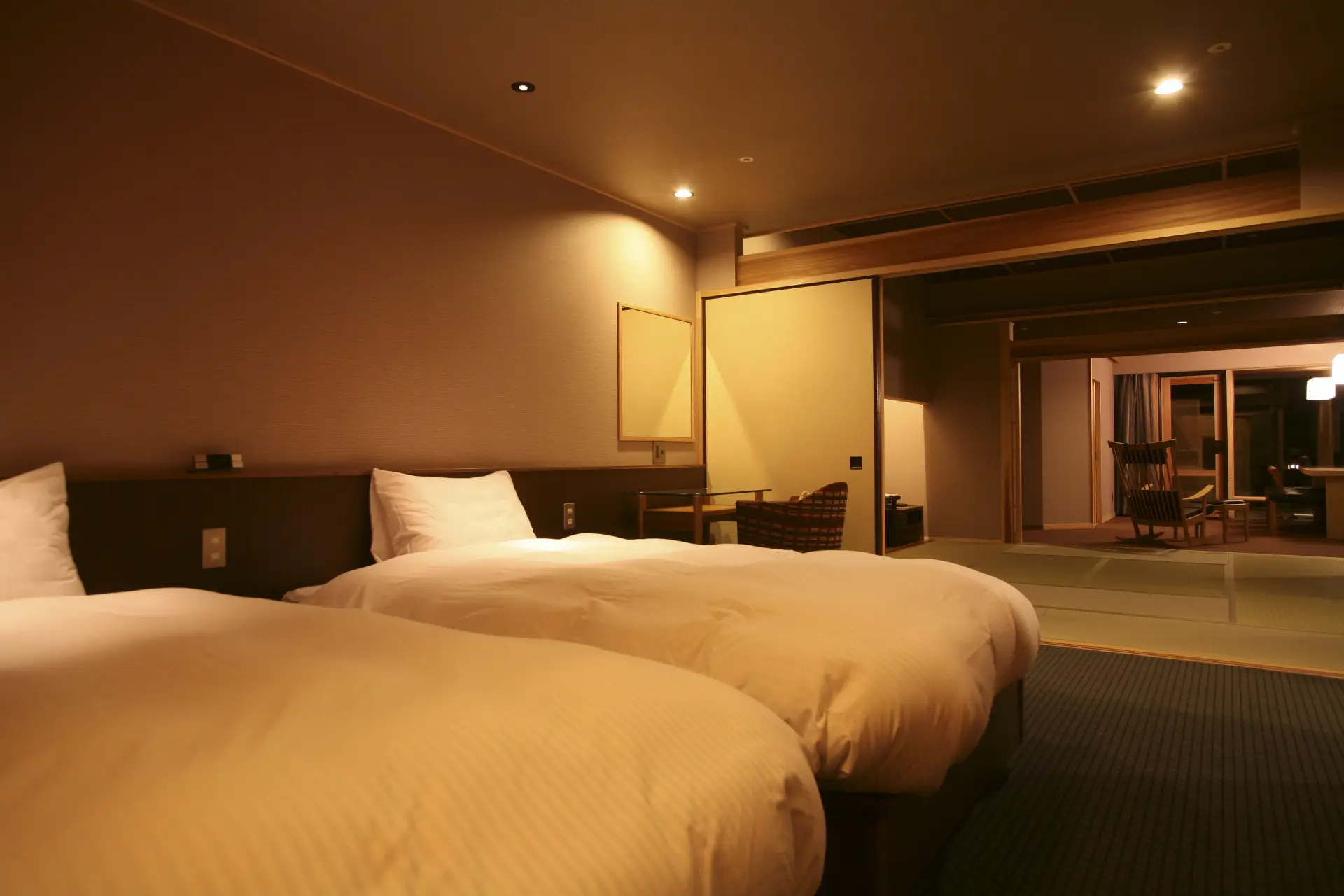 島の東海岸に位置するホテルニューアワジでは、全ての客室から海を望むことができ、露天風呂は島の下を流れる天然温泉を利用しています。夕食には、新鮮な刺身、淡路牛のしゃぶしゃぶ、島の甘い玉ねぎを使った特産品など、淡路島の食の誇りが詰まった料理が提供されます。早起きの方は、インフィニティスタイルの温泉で日の出を楽しみ、その後、美味しい朝食ビュッフェを堪能できます。