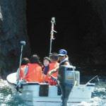 新温泉町の魅力は陸地だけにとどまりません!このプログラムでは、大型の遊覧船では入ることのできない洞門へご案内。普段は漁師をしている船長が小船を操縦し、三尾の海の感動体験をお届けします。洞門へ入ると、そこはまさに“青の世界”。まるで「青の洞窟」のように透き通った青い海に包まれます。大自然がつくりだした芸術品・洞門や奇岩と海が織り成す世界は絶景です。