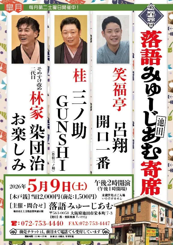 第220回落語みゅーじあむ寄席は5月9日(土)開催。