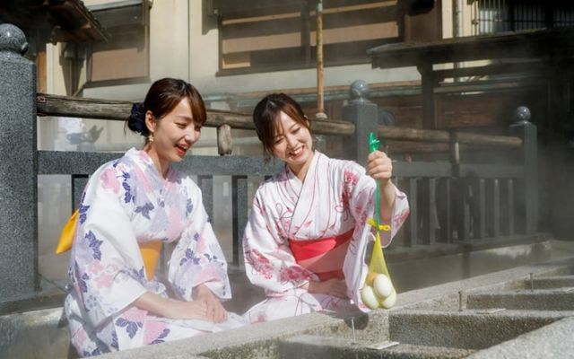 湯村温泉は日本屈指の熱さを誇る98℃の源泉を持ち、この地域で昔から「荒湯」と呼ばれる湯つぼで野菜などをゆがいてきました。静かで落ち着いた温泉街でまち歩きを楽しみながら、荒湯で卵とプリンを茹でるゆがき体験、おばぁかふぇで根性焼き(回転焼き)体験と地元おばぁとの交流
