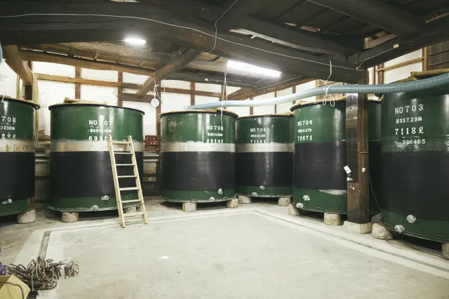 酒蔵内の仕込みタンク。 ※酒造りが本格化する冬など、時期によっては1階のタンクそばまで降りることができないことがあります。ご注意ください。