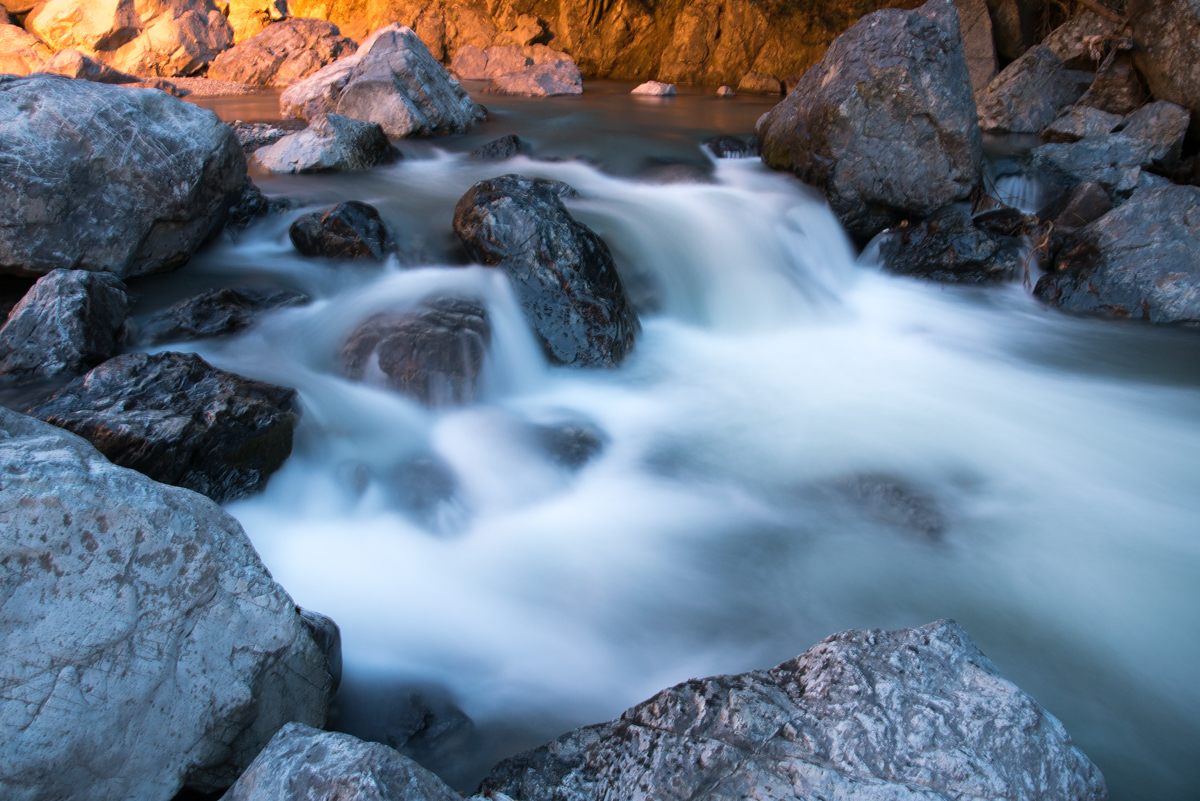 美しい清流を目と耳で楽しむ露天風呂。夜はライトアップで幻想的に