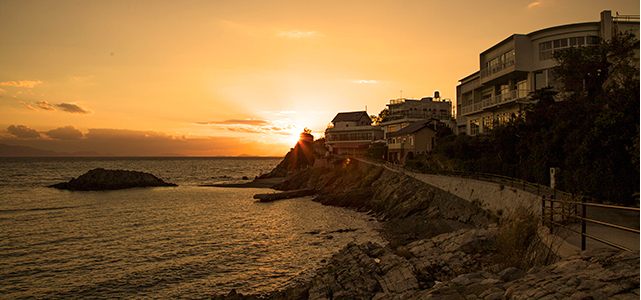 「きらきら坂」から見る海は、その名の通りまぶしいほどに輝きます。