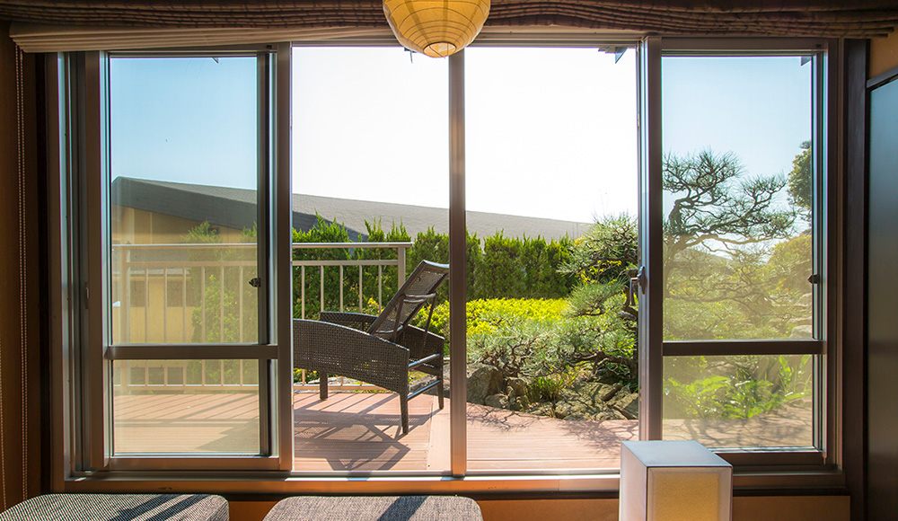 客室は、眺望や設備、雰囲気の異なる6タイプと、天空露天風呂付の特別客室「天空」を合わせて全部で7タイプ。ほぼすべての客室から瀬戸内海の広大なパノラマを望めるように設計されています。海沿いの客室では、海の青さに引き込まれ、時を忘れてしまいそう。温泉と景色を独り占めしたい人は露天風呂付きの客室、四季折々の自然を望むなら「磯浜庭園」に接する庭園側客室がおすすめ。アメニティやティータイム、室内着など、贅を尽くしたもてなしを受けられる特別客室「天空」は、ワンランク上のもてなしと景観が手に入ります。