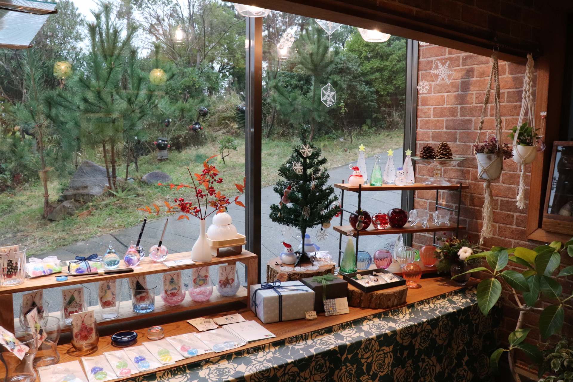 色鮮やかにキラキラと輝くガラス小物が並ぶ「御崎ガラス舎」。
